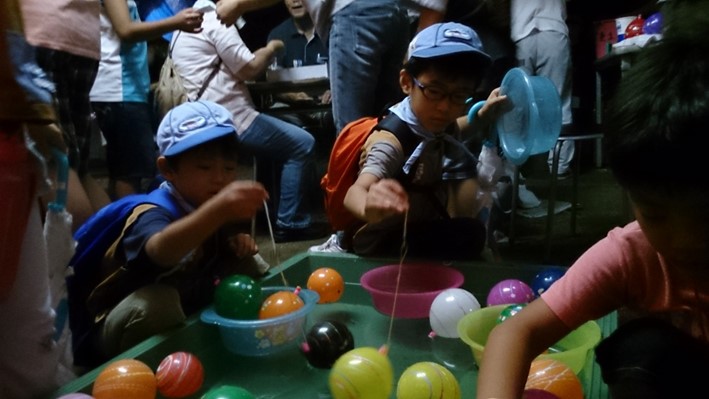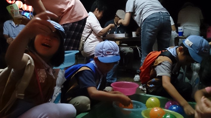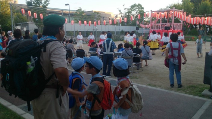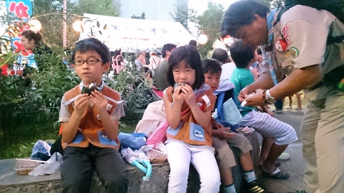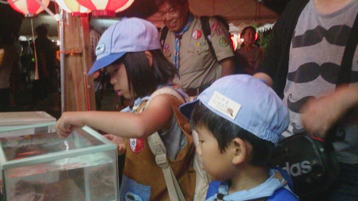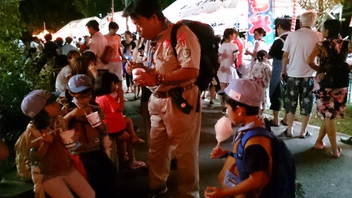 夏祭りに参加して、夜店を体験するプログラムに、ボーイスカウトとして