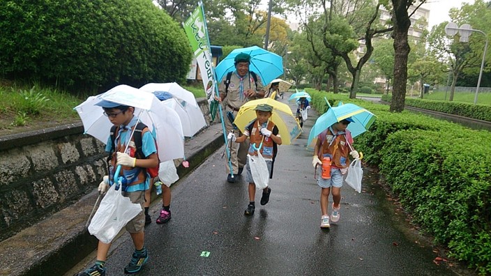 しかし、スカウトは雨にも負けずに元気に嫌がらずに奉仕活動を