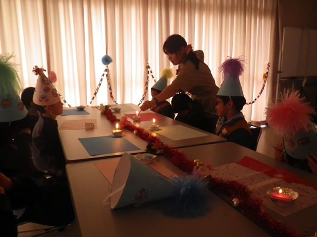 ローソクに火をつけて、いよいよ隊長の話(今回は火の有難さについて)。