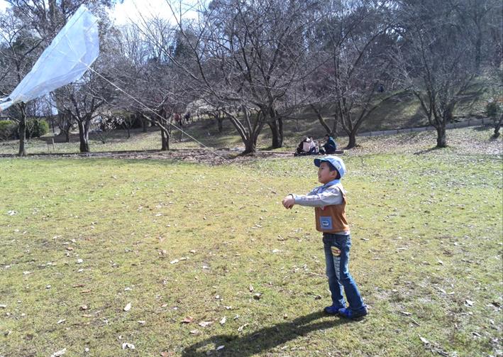 春一番の為、手作り凧は、面白く上がっていく。