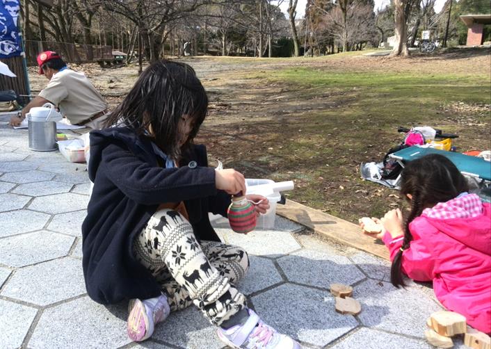 春一番、とても強い風の中、色々な物を作って遊ぶ。