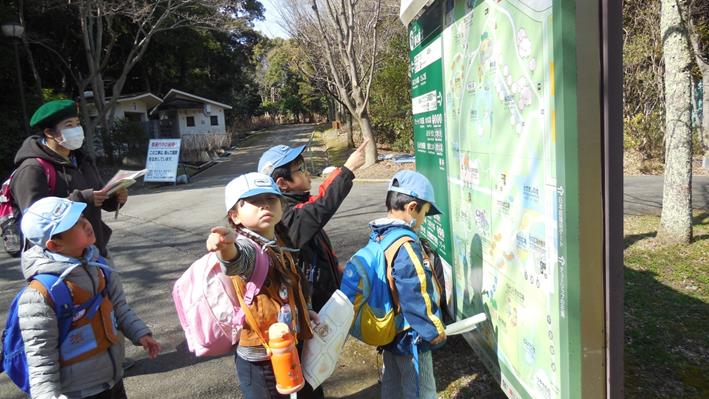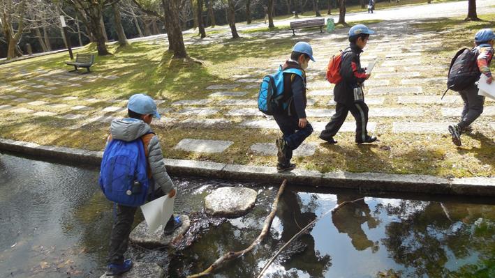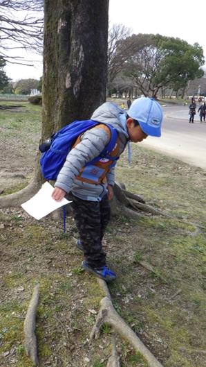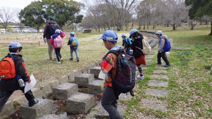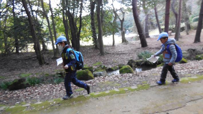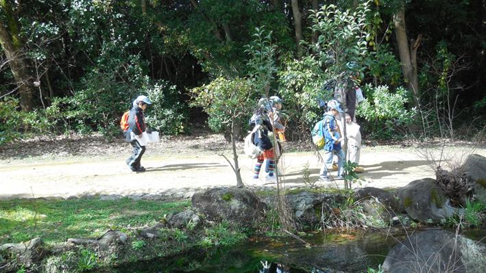 遊具遊びも終わって帰る途中です。