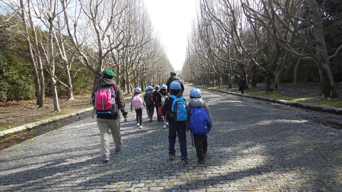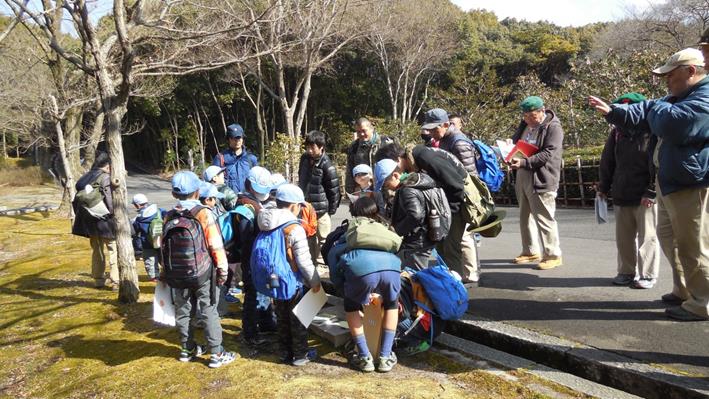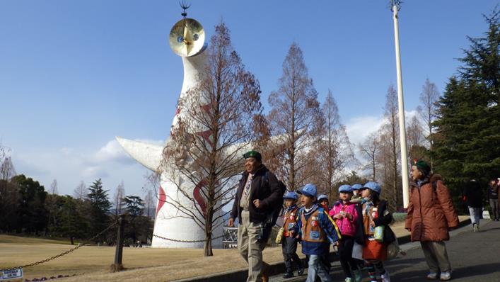 万博公園内を歩く一団。