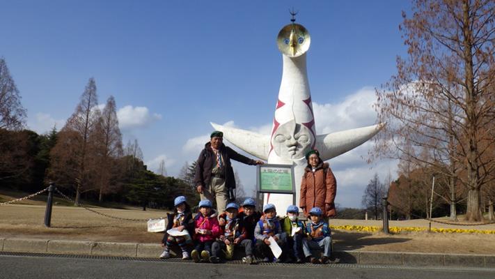 お決まりの「太陽の塔」の前でパチリ。