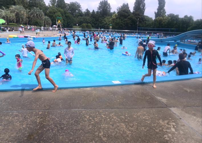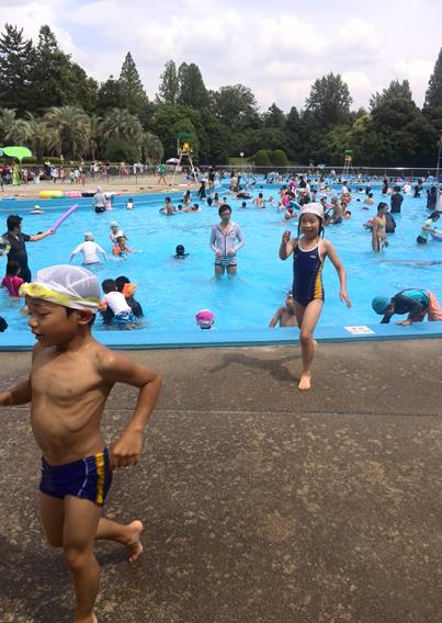 飛行機遊びの後は、市民プールで水遊び。