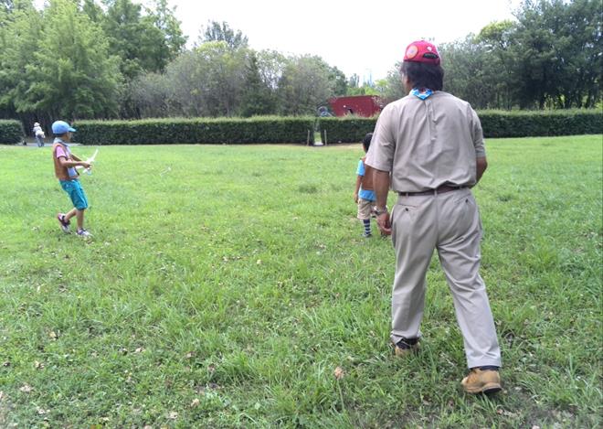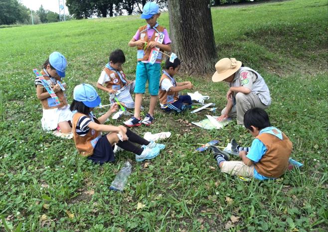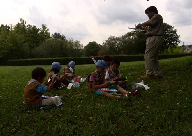 たまたま出会わせた、友団ビーバースカウトも混じって、飛行機大会のように