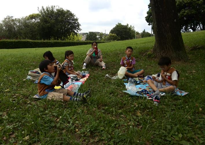 歩き疲れても、いつもの様に公園に着くと、こんな感じ。