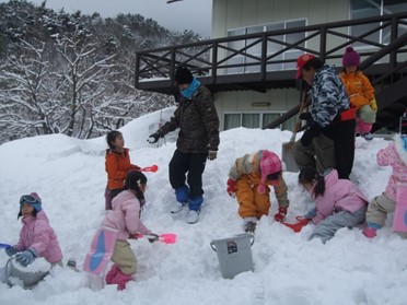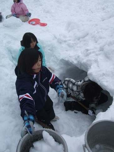 遊びの結果がカマクラ(雪壕)になる体験を通じて学ぶ。
