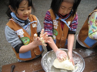 自分達で食べるツイストパンを自分達で作る、