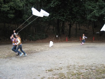 ゴミ袋で作った凧を元気に