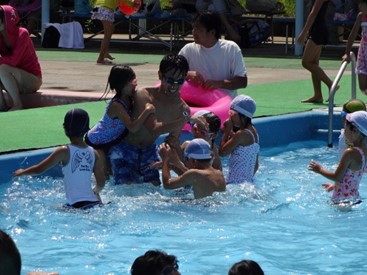 高野台の市民プールに行きました。 水のありがたさ・大切さ少しは解ってくれたかな?