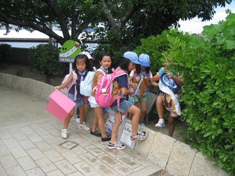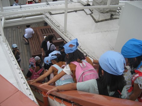お宝の地図の切れ端が入っている、皆で合わせて場所が解りいざ出発、天保山付近でお宝ゲット!