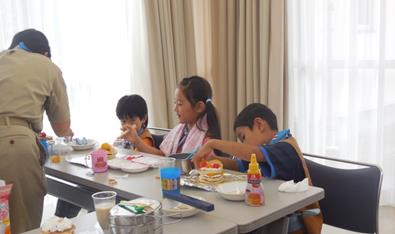 オリジナルケーキ作り、盛り付けも手でするスカウト、