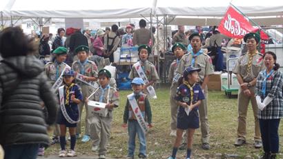 初めは恥ずかしそうにやっているスカウトもだんだん大きな声で協力を呼びかけていました、多くの協力者の方々に感謝