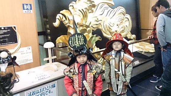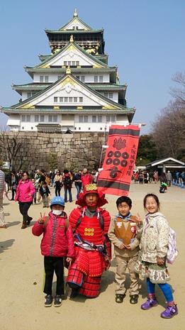 着てみて、重い事にビックリしたり、高い天守閣から大阪の街並みを見て