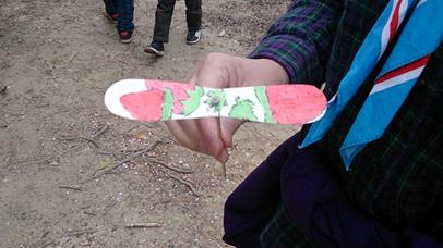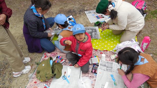 いつもながら、クラフトも野外でします。