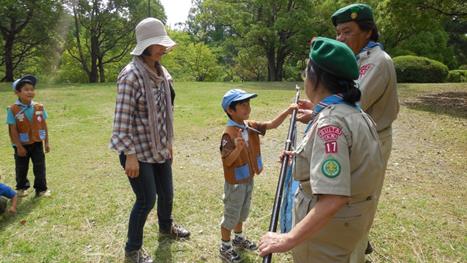 真面目で元気な新入スカウト、入隊式終了後目をキラキラさせて