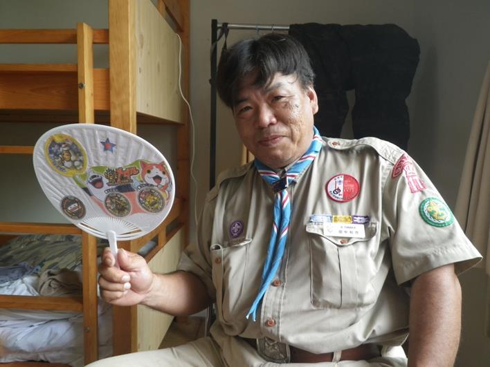 暑さ対策は団扇、ちなみに隊長の団扇は色んな物が貼っています。