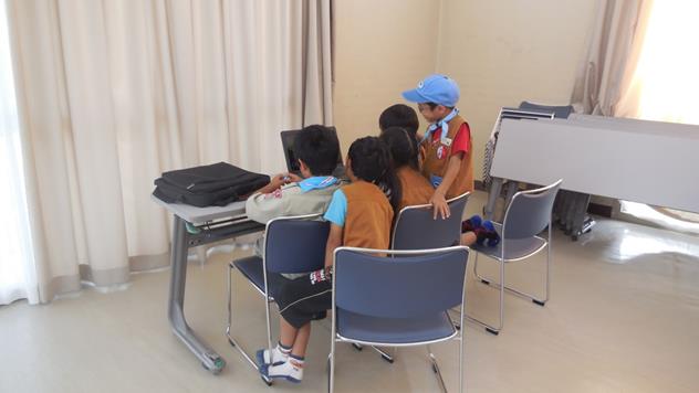 焼き焼きパーティー終了後、スカウトはパソコンでDVD鑑賞!