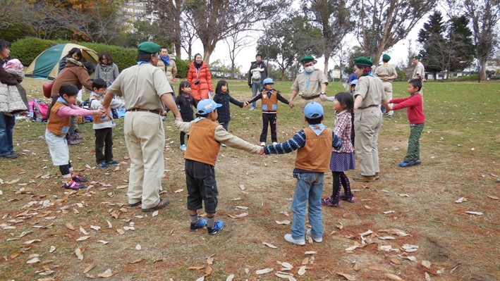 ビーバー隊独自のゲーム・遊びに、大勢の体験入隊者も参加。