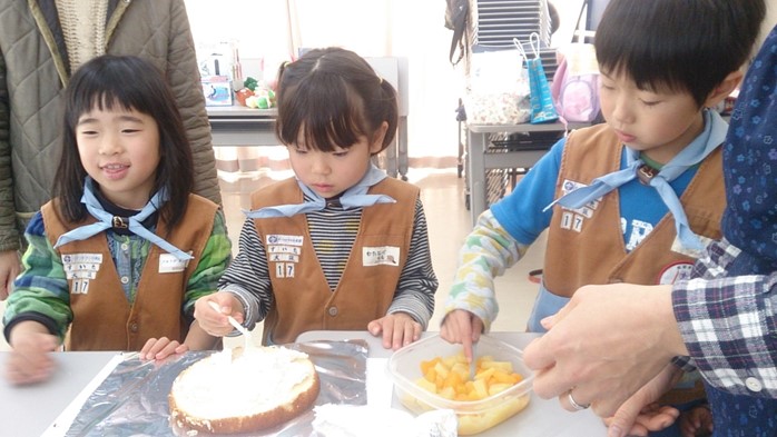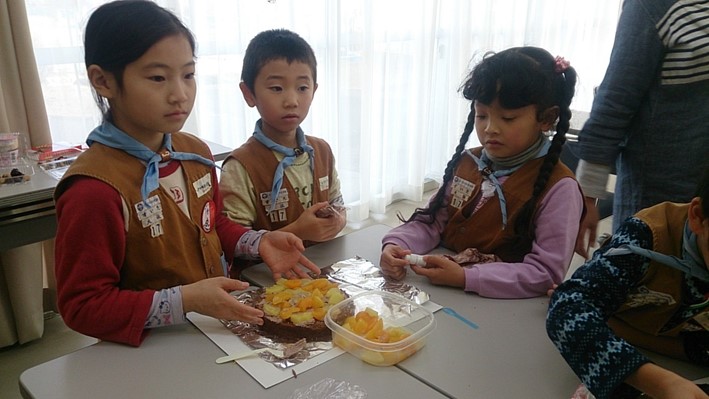 皆でケーキ作り、真剣に楽しそう。