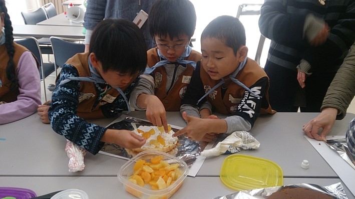 大変な事をやり遂げて食べるスカウトの顔、