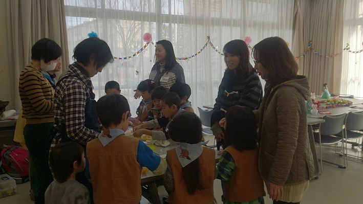 おかあさん達に見守られながらのケーキ作り。
