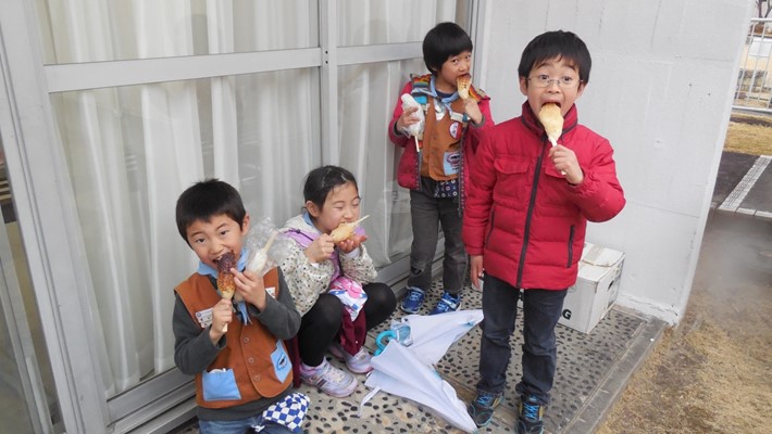 「雛人形作り」の間に指導者が焼いた、色々な味の「たこ焼き」。