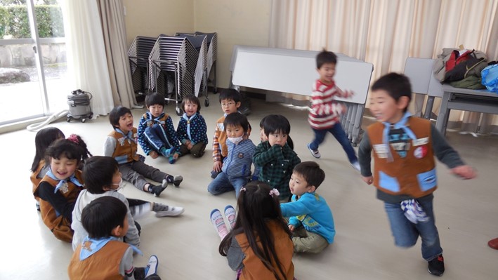 まずは、「ハンカチ落とし」で、体も心も温まろう。