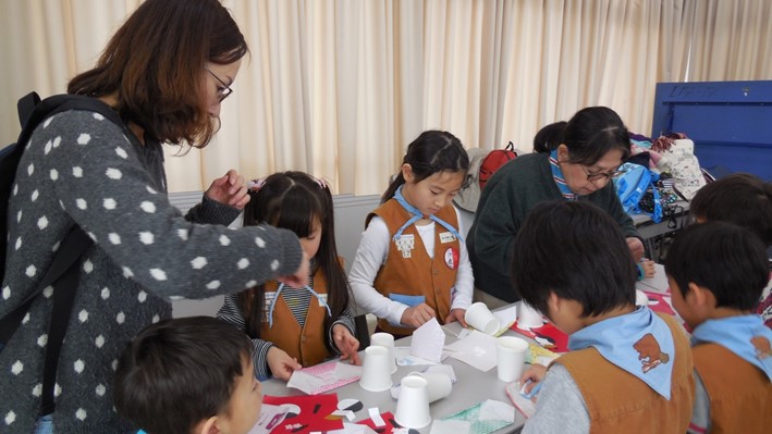 指導者の指導を受けながら、「ひな人形作り」開始。