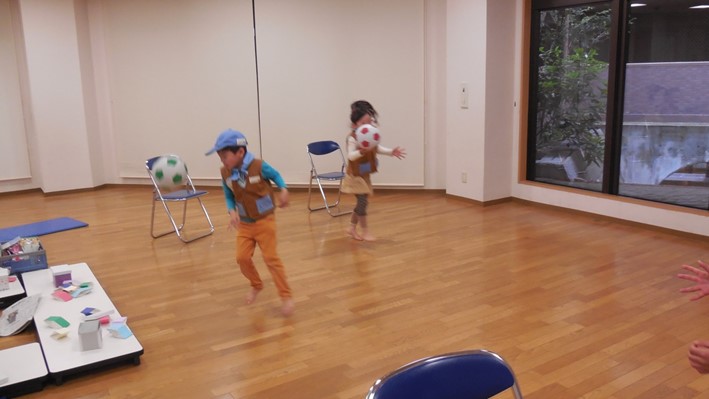 ビックリ箱も完成し、今度は体を動かすゲーム。
